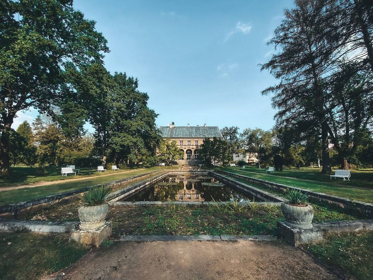 Dům stojí na pozemku o velikosti skoro 15 tisíc metrů čtverečních a jeho dominantou je okrasná zahrada z roku 1925 od architekta Josefa Kumpána z Prahy.