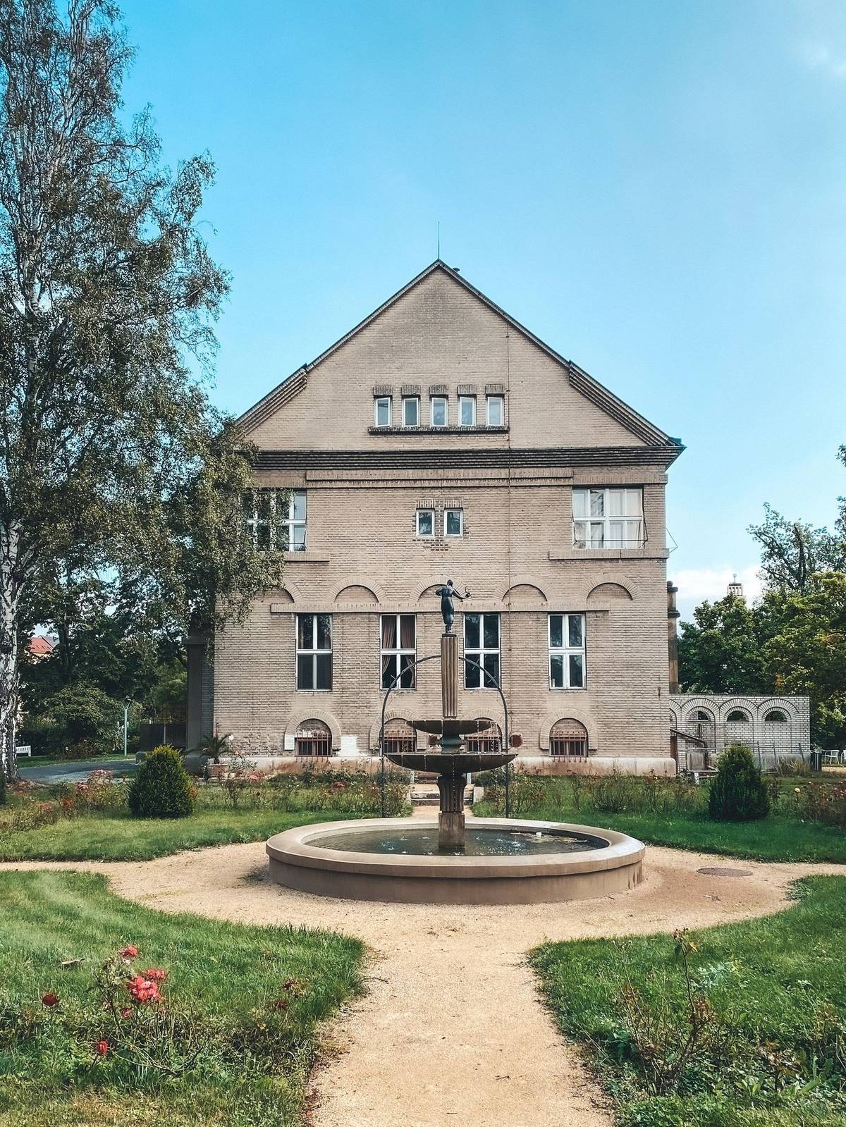U domu je dekorativní bazén s lekníny. Ten měl podle dokumentu Národního památkového ústavu původně v rozích ještě kovové žáby, které ze svých útrob chrlily vodu.