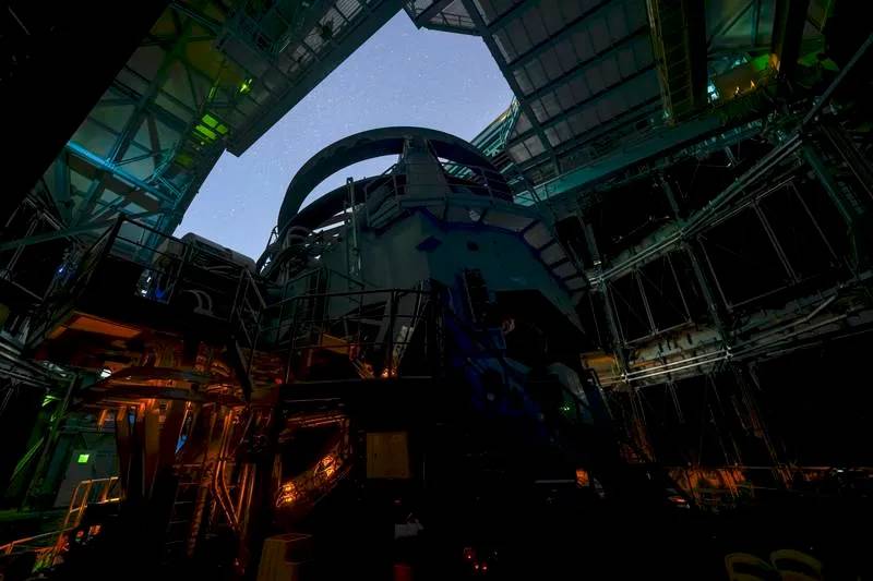 Na snímku unikátní dalekohled (Simonyi Survey Telescope) o délce 8,4 metru, který je spojen s největší digitální kamerou na světě s rozlišením 3200 megapixelů, kterou podporuje výkonný systém pro zpracování dat. Dalekohled používá systém tří zrcadel.