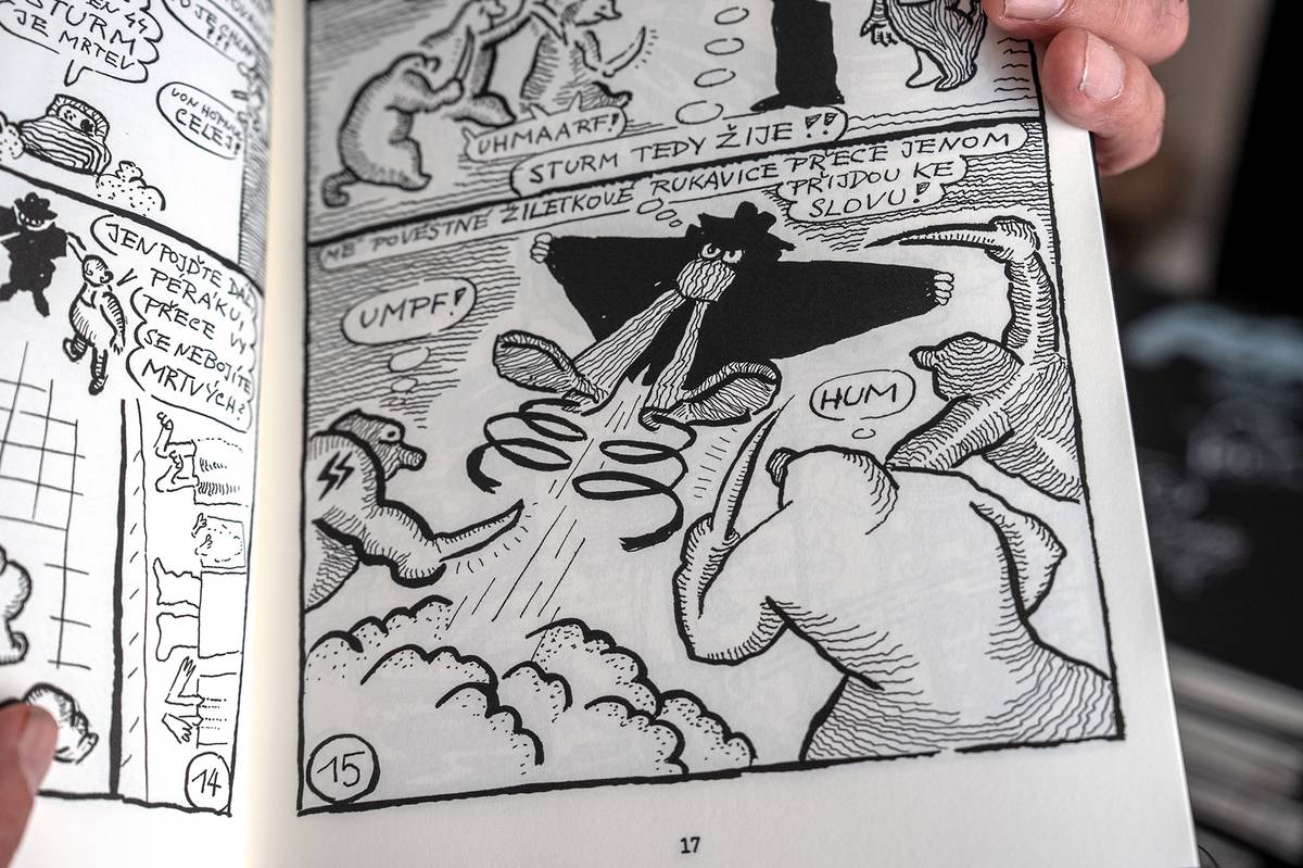 Ondřej Neff vytvořil na každou obálku limitované edice komiksu Pérák ruční kresbu prvního českého superhrdiny.