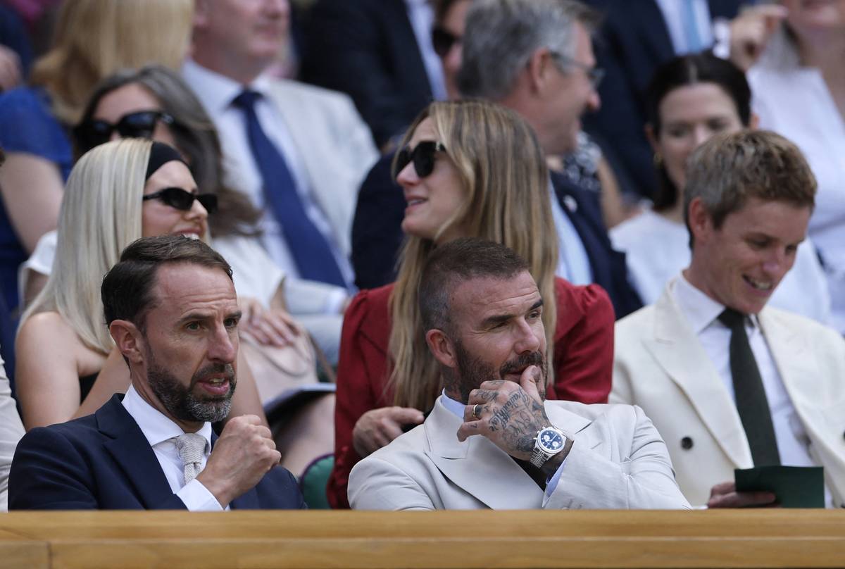 Vzácní hosté. David Beckham a Gareth Southgate sledují první zápas Carlose Alcaraze.