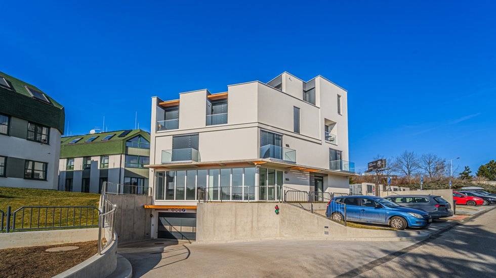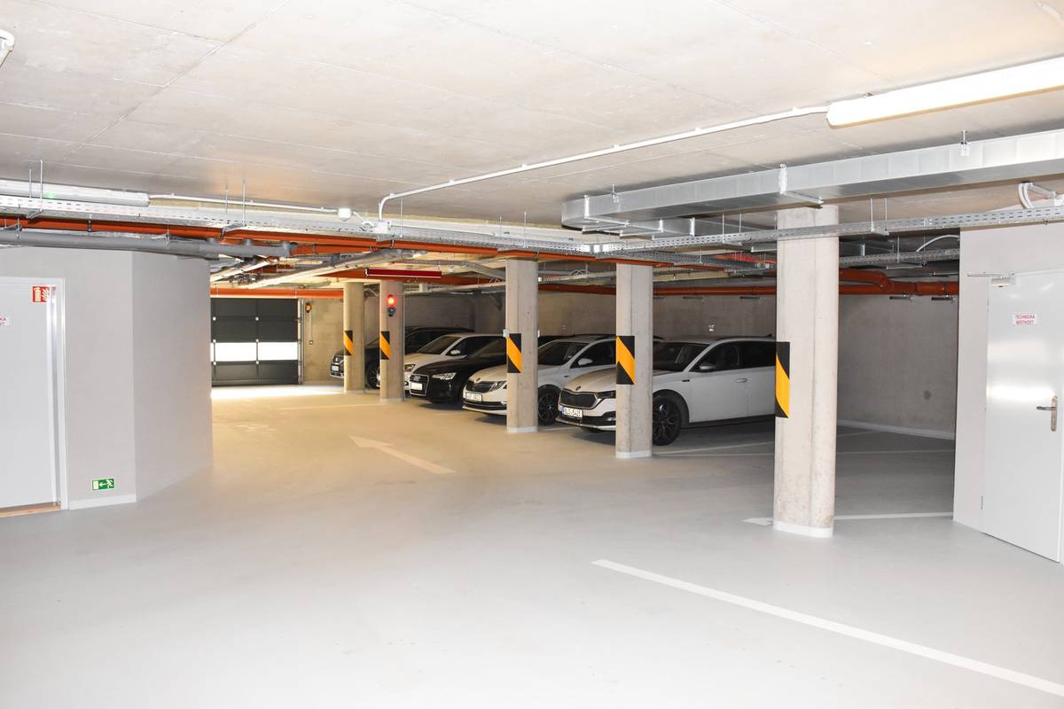 Obyvatelé mají k dispozici podzemní garáže i parkovací stání u stavby.