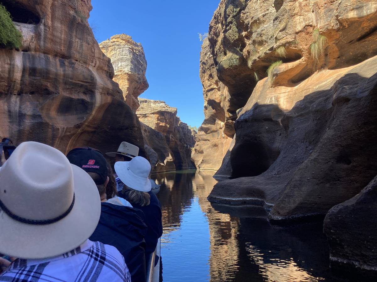 Cobbold Gorge je úzký pískovcový kaňon v odlehlém vnitrozemí Queenslandu, kterým můžete projet na lodi.