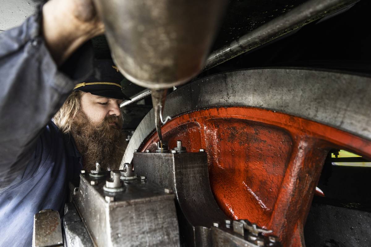 „Kdo maže, ten jede,“ říká mašinfíra během mazání kolového ústrojí. Nejlépe by se prý měly závity kontrolovat každých 50 km.