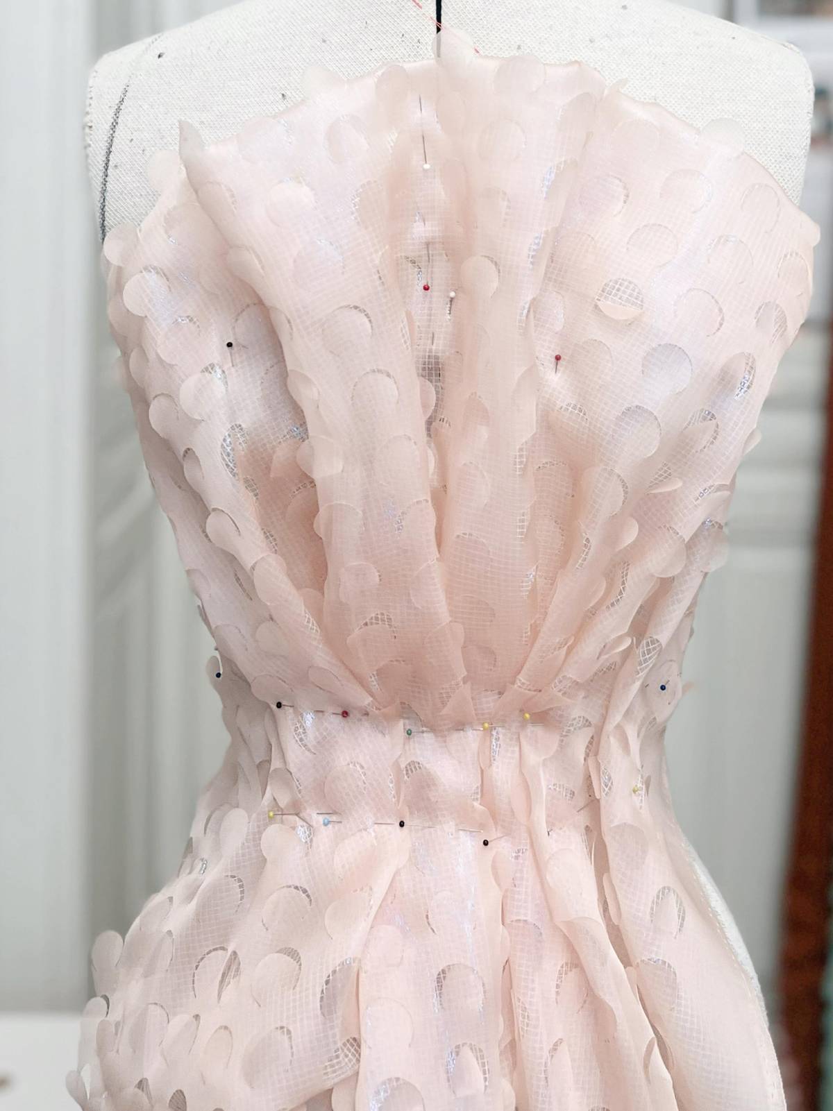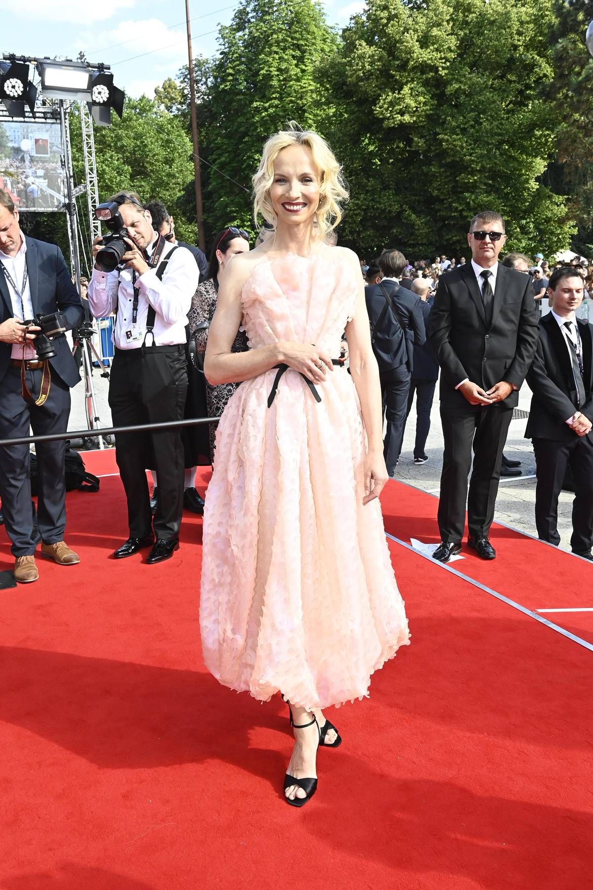 Herečka zvolila šaty z hedvábné organzy od návrhářky Zuzany Kubíčkové.