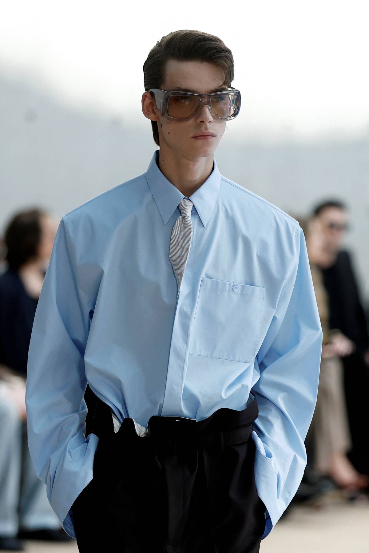 Saint Laurent představil zajímavý detail v podobě schované kravaty.