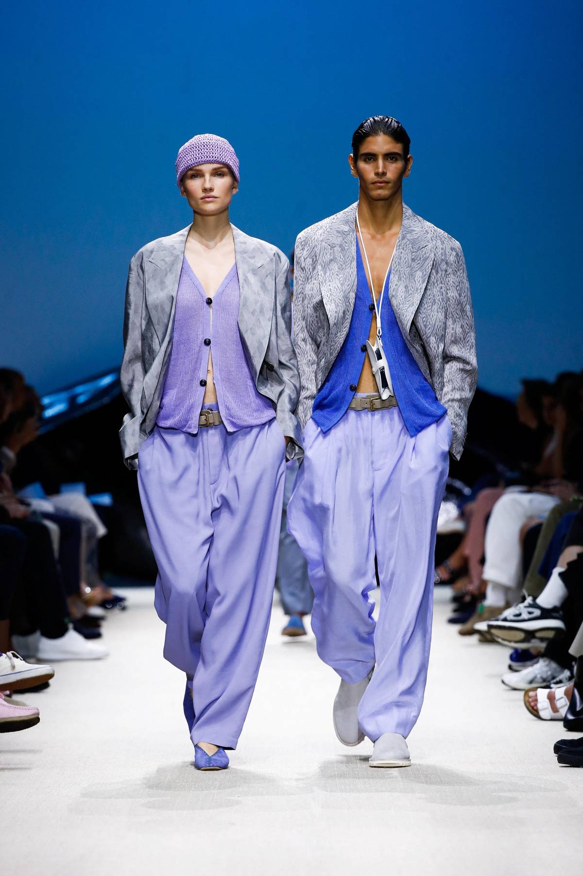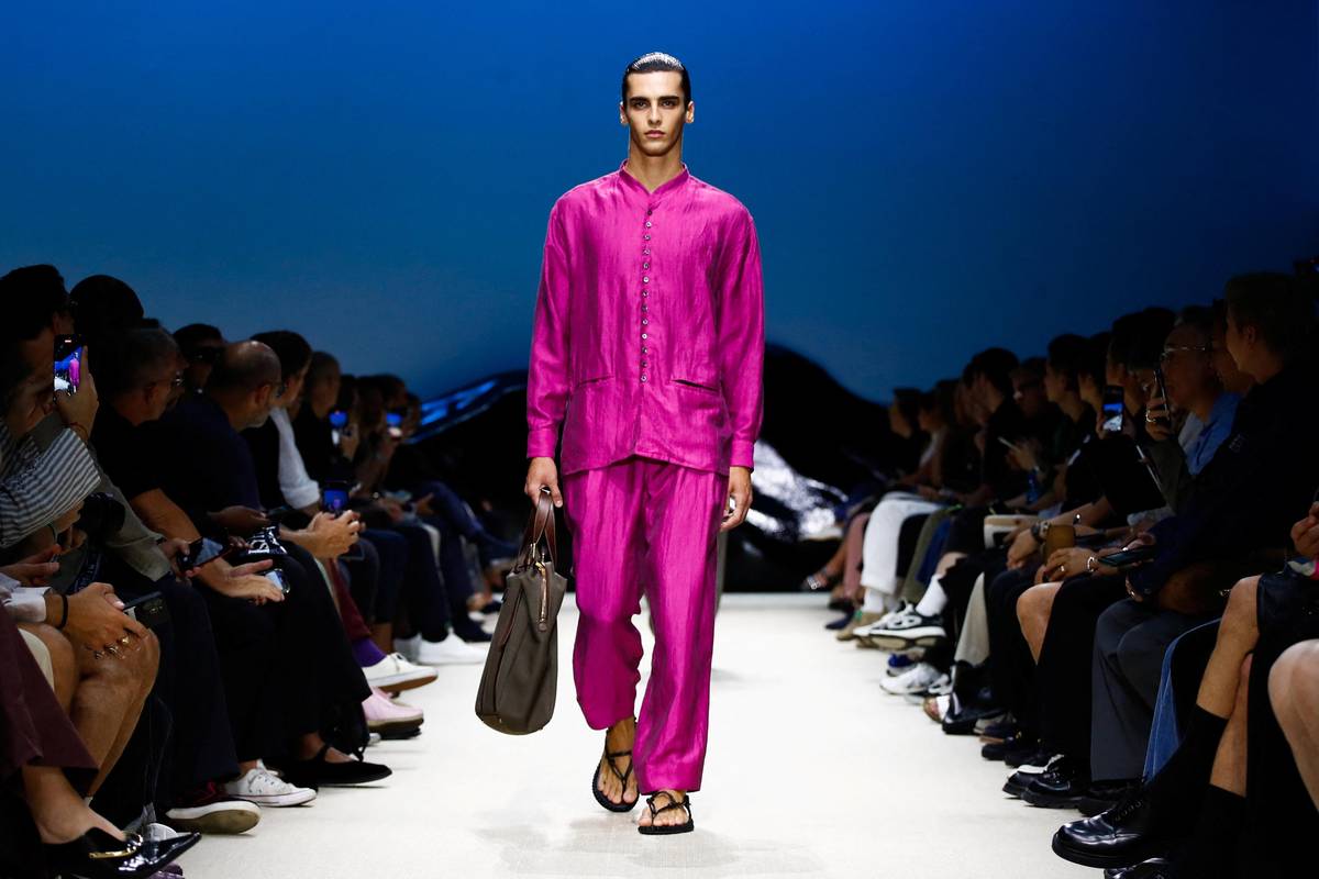 Giorgio Armani přišel s fialovými komplety.