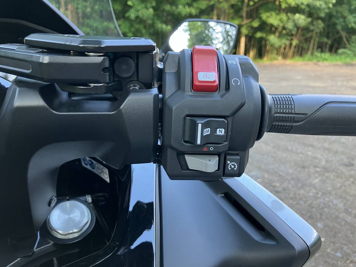 Tlačítko vpravo dole (RES/SET) slouží k regulaci rychlosti tempomatu. U slabších verzí Forzy je použito k nastavení výšky plexi štítu.
