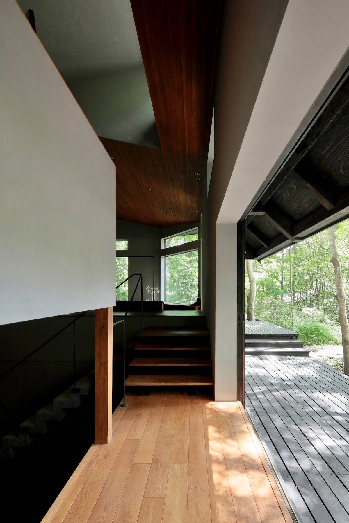 Schodiště různých typů propojují rozdílné úrovně interiéru.