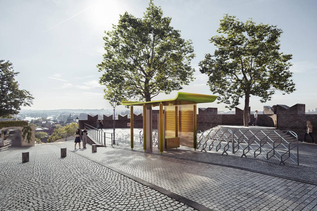 Vítězný návrh - pohled na Prašný most před a po výměně kontrolních stanovišť.