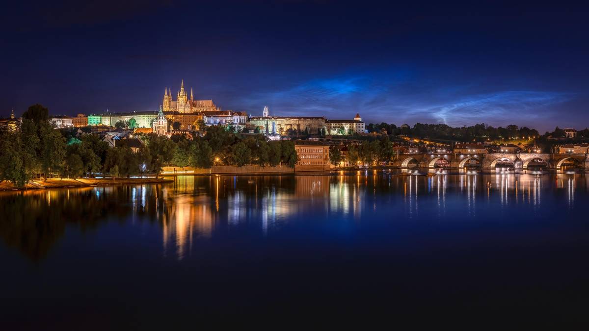 Zde fotila klasický záběr Pražského hradu s Vltavou, tentokrát ozvláštněn o meteorologický jev. Na pravém obzoru lze vidět takzvaný polární mezosférický oblak neboli noctilucent, což je úkaz viditelný při soumraku či rozbřesku a vypadá jako svítící mraky na noční obloze.