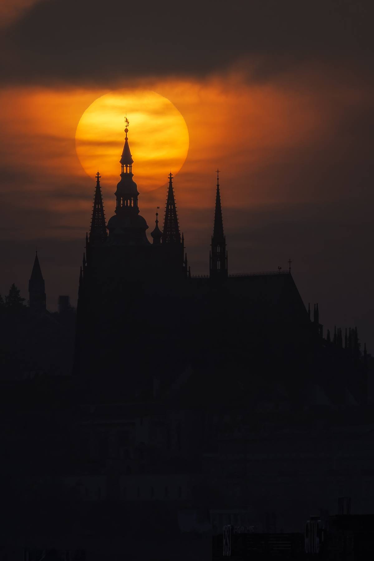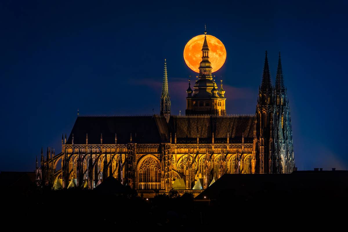 Měsíc na katedrálou svatého Víta. Valerie snímala celou série během několika hodin.