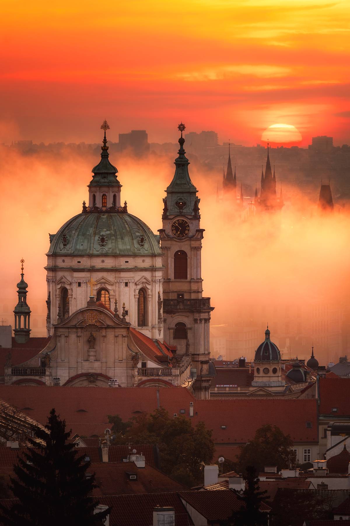 Únor 2024, fotografováno „z křoví u Chotkových sadů“. Díky studenému zimnímu vzduchu se linul kouř z komínů na Malé Straně a Starém Městě. „Chodili jsme takhle tři dny, abychom vychytali kompozici. Chtěla jsem vychytat kříž uprostřed, nazvala jsem to božské inferno.“