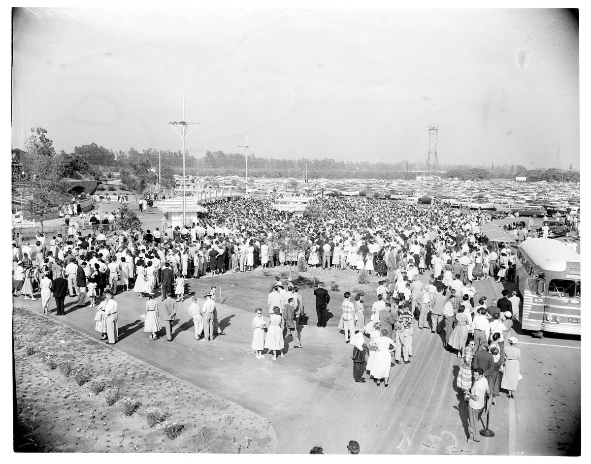 (Parkoviště u Disneylandu v den jeho otevření, 1955.)
