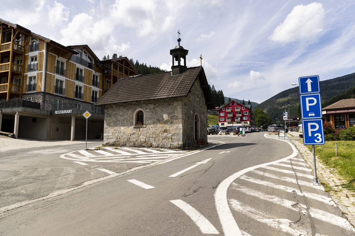 Kaple Panny Marie, která je už léta uvězněná uprostřed vozovky.