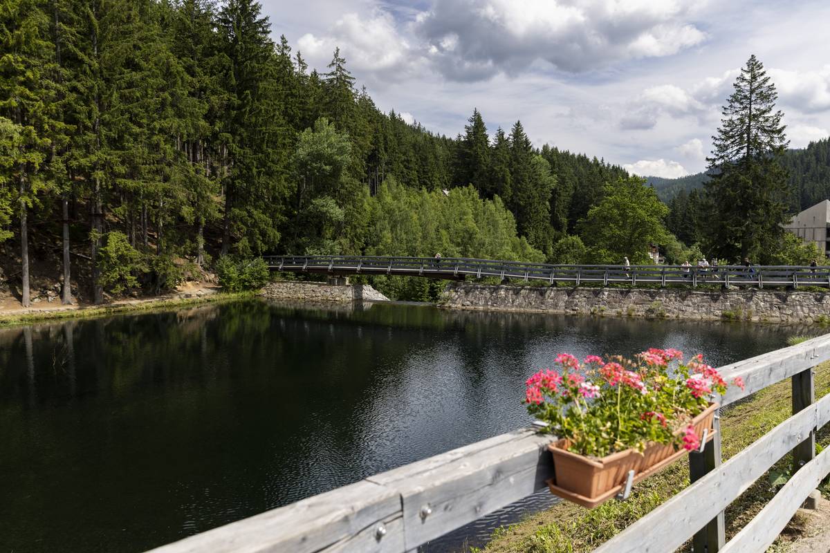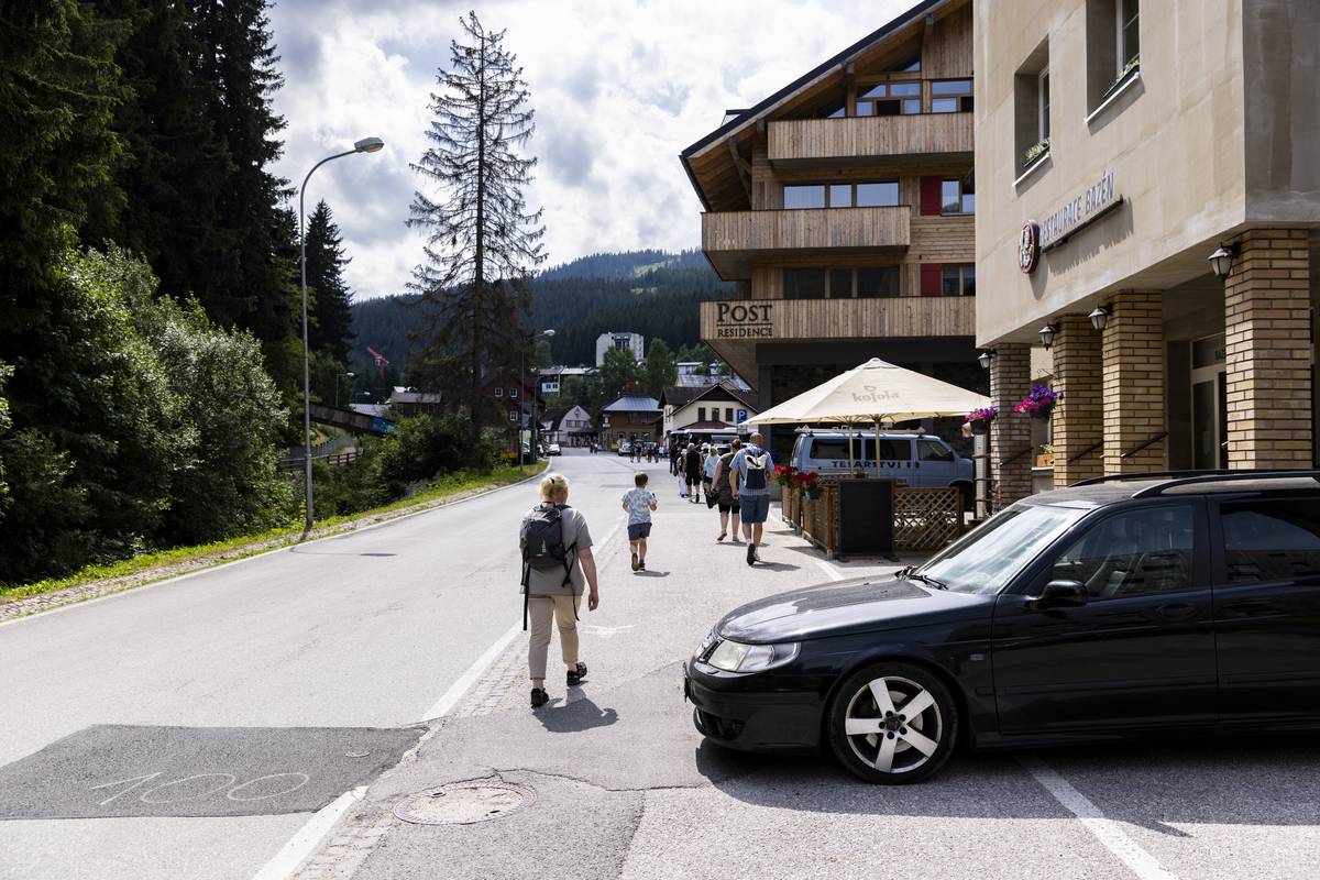 Závěrem cesty k lanovce turisté konečně prochází lesem.