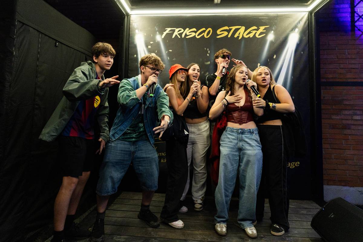 „Opět jsme tady spolu a já doufám, že si užijeme nejlepší festival na světě,“ zvolala odpoledne Holušová (třetí zprava) na hlavní scéně, když do davu vystřelila konfety.