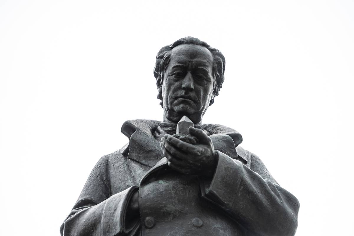 Nedaleko od něj německý básník Johann Wolfgang Goethe zadumaně hledí do krystalu.