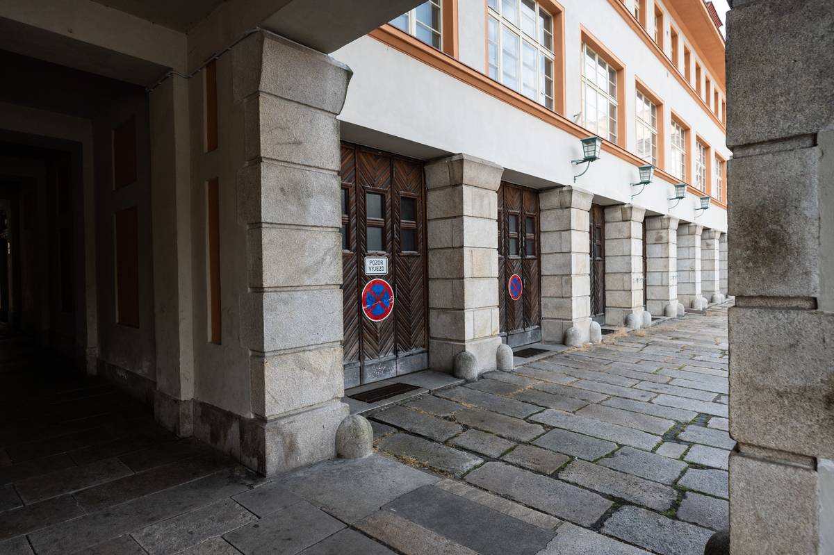 A poštovní náměstí, kterému kraluje památkově chráněný komín…