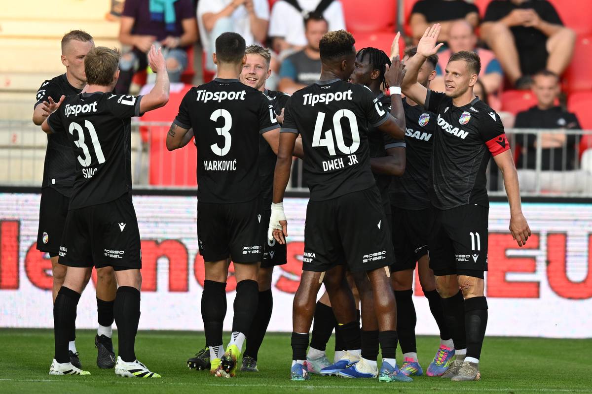 Hráči Plzně slaví další branku.