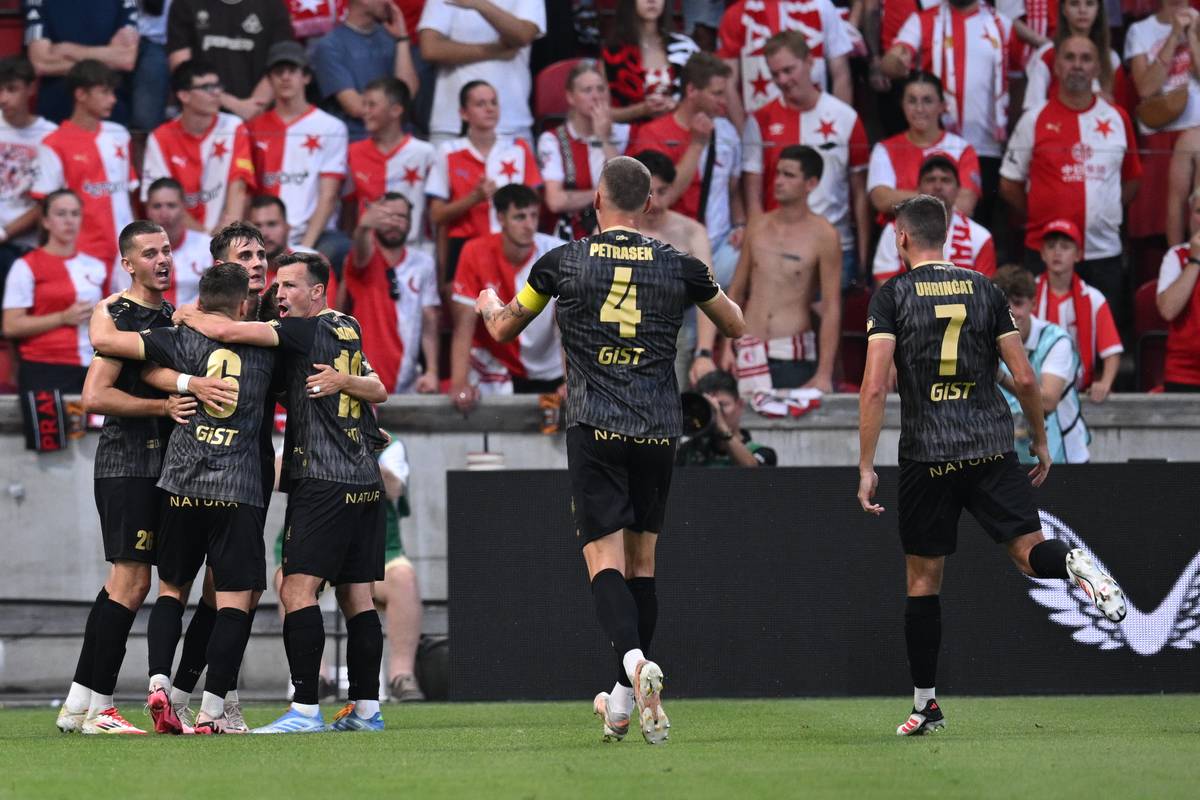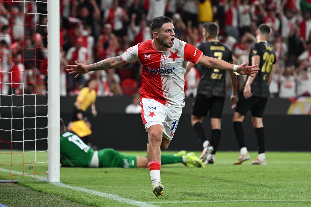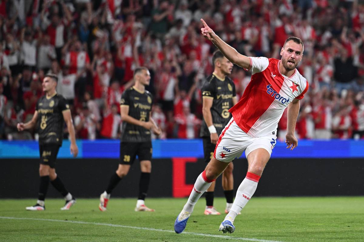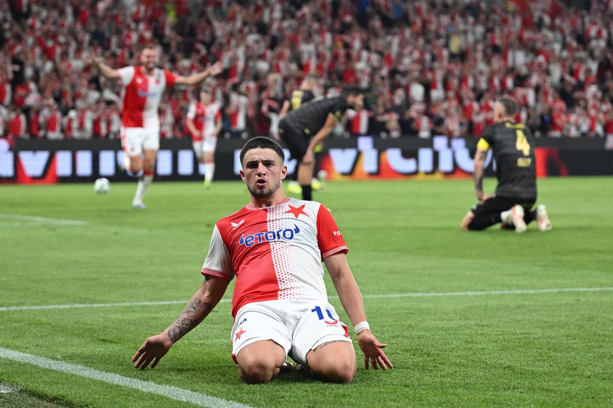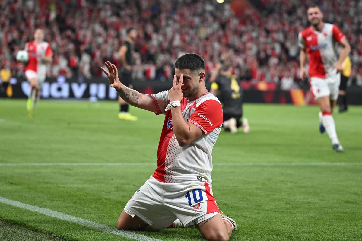 Tomáš Chorý ze Slavie se raduje z vyrovnávací branky.
