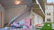 Zaujme nevšední barva výmalby i tvarově odvážné osvětlení.