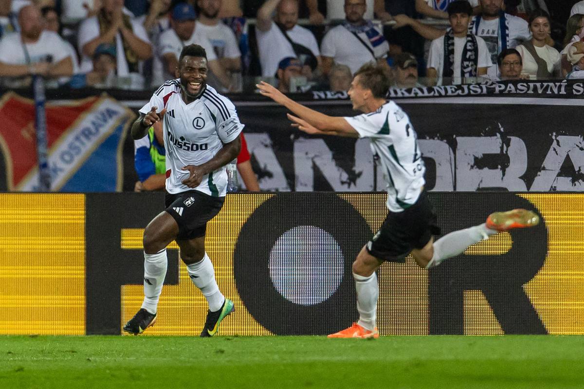 Jean-Pierre Nsame z Legie oslavuje gól proti baníku.