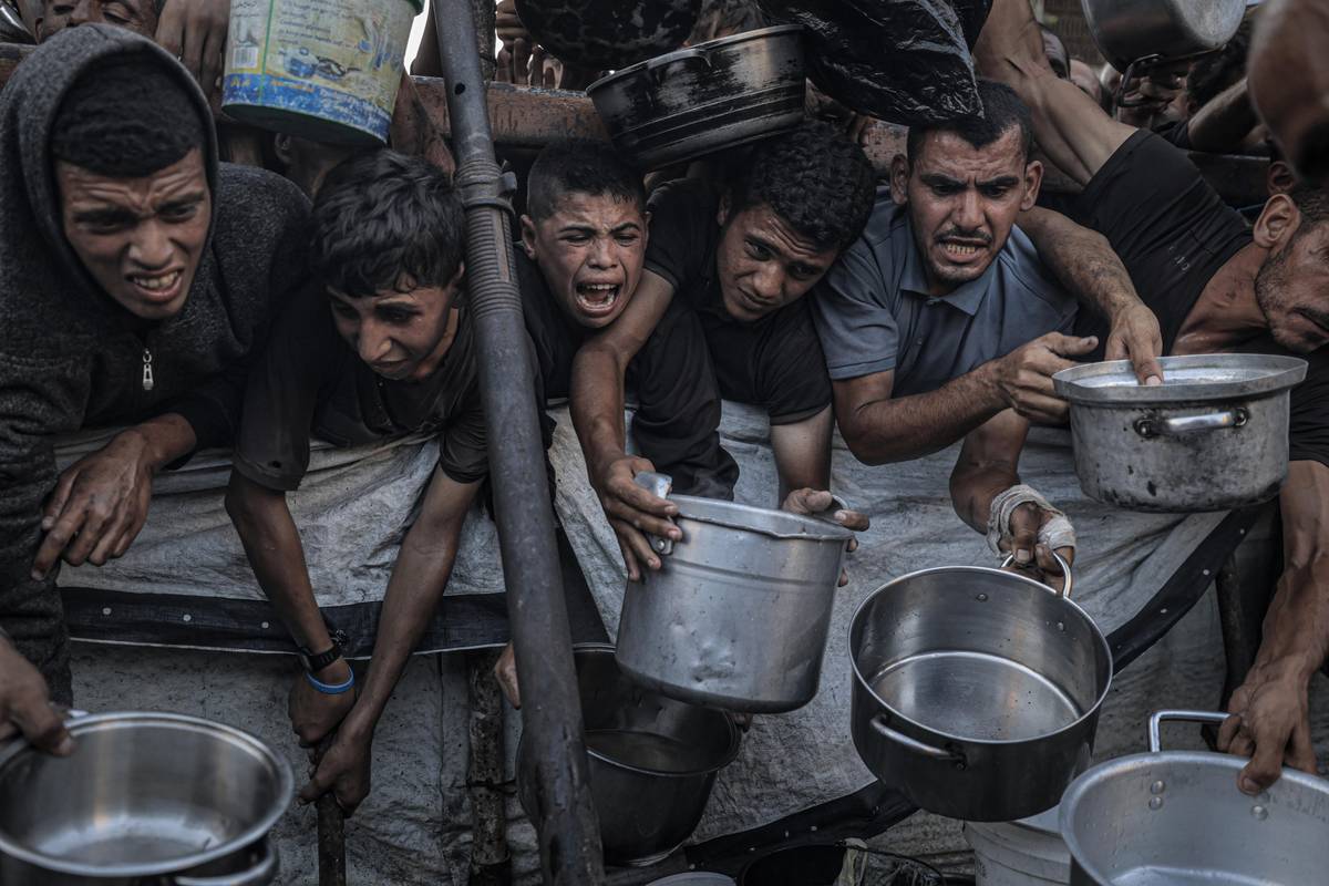 Už v sobotu izraelští vojáci stříleli na Palestince poblíž místa distribuce potravin v Rafahu na jihu Pásma Gazy. Izraelská armáda uvedla, že vojáci odpálili „varovné výstřely“, když se k nim lidé přiblížili a neuposlechli rozkazu k zastavení. (Palestinci čekají ve frontě na teplé jídlo distribuované charitativní organizací ve městě Gaza, 20. července.)