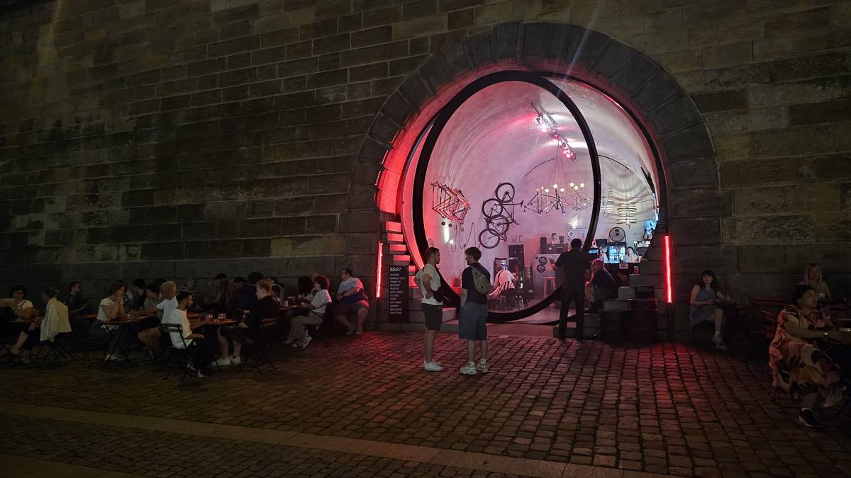 Do této části náplavky se přesouvá hlavní nápor nočního života.