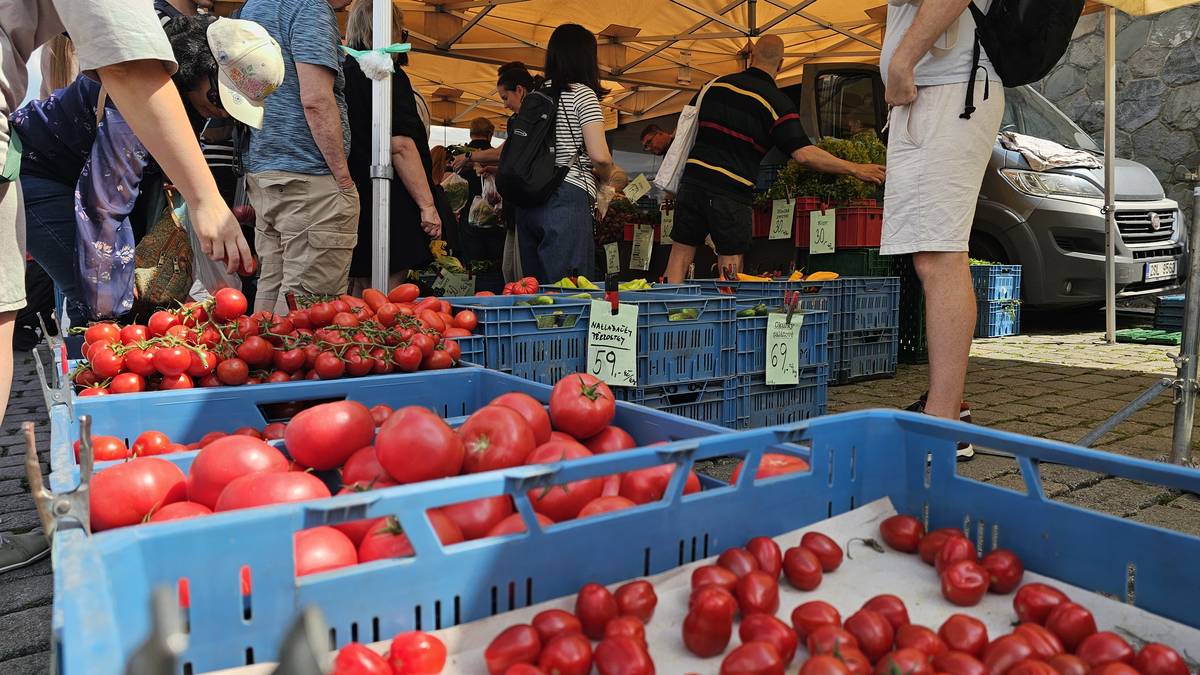 Výběr čerstvé zeleniny na náplavce během sobotního dopoledne