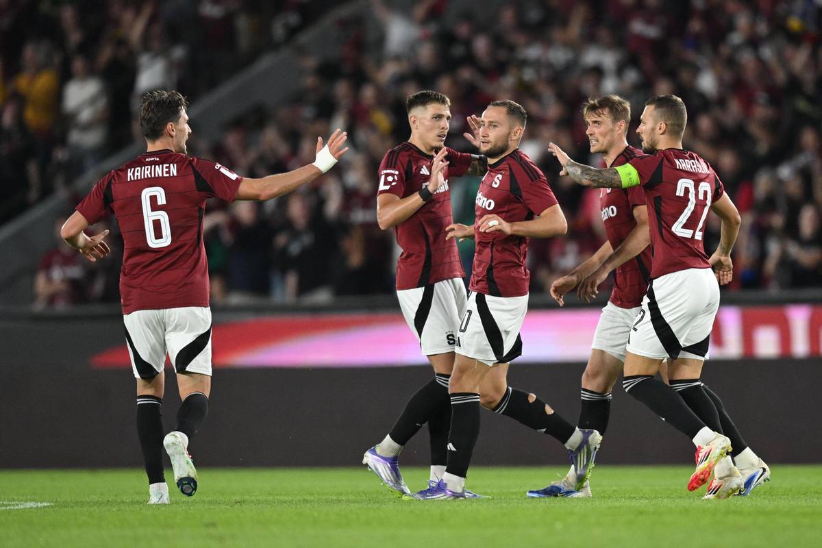 Fotbalisté Sparty oslavují gól proti Mladé Boleslavi.