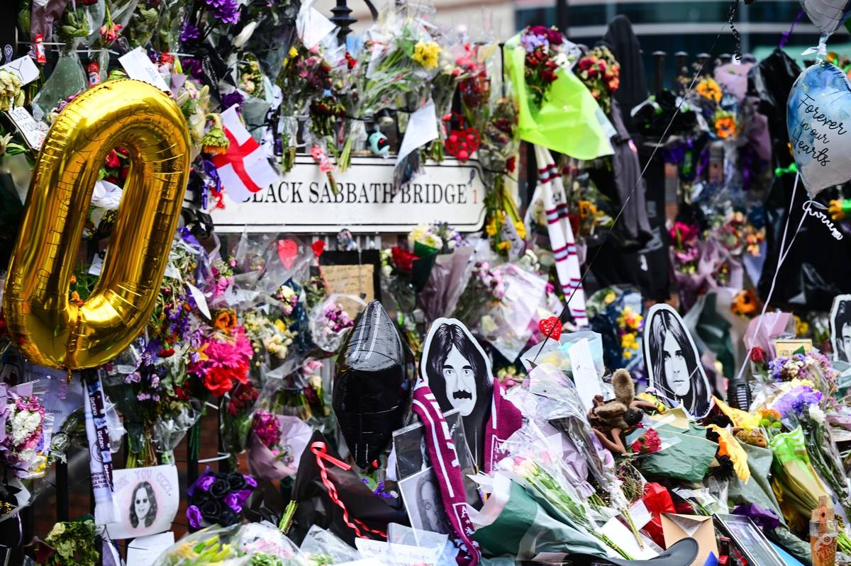 Smuteční průvod dorazil až k památníku skupiny Black Sabbath, který se stal hlavním pietním místem a který fanoušci zaplnili smutečními předměty.