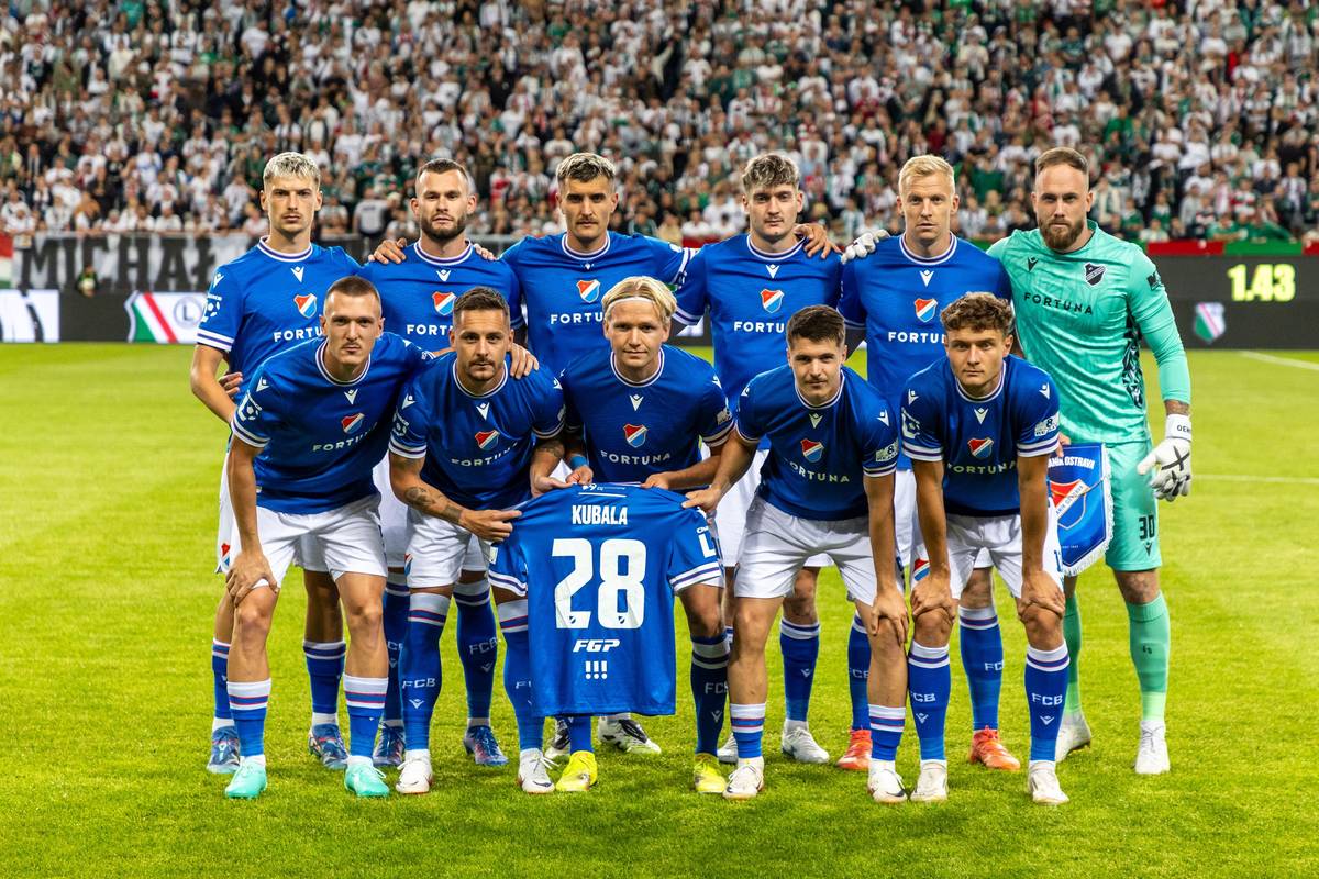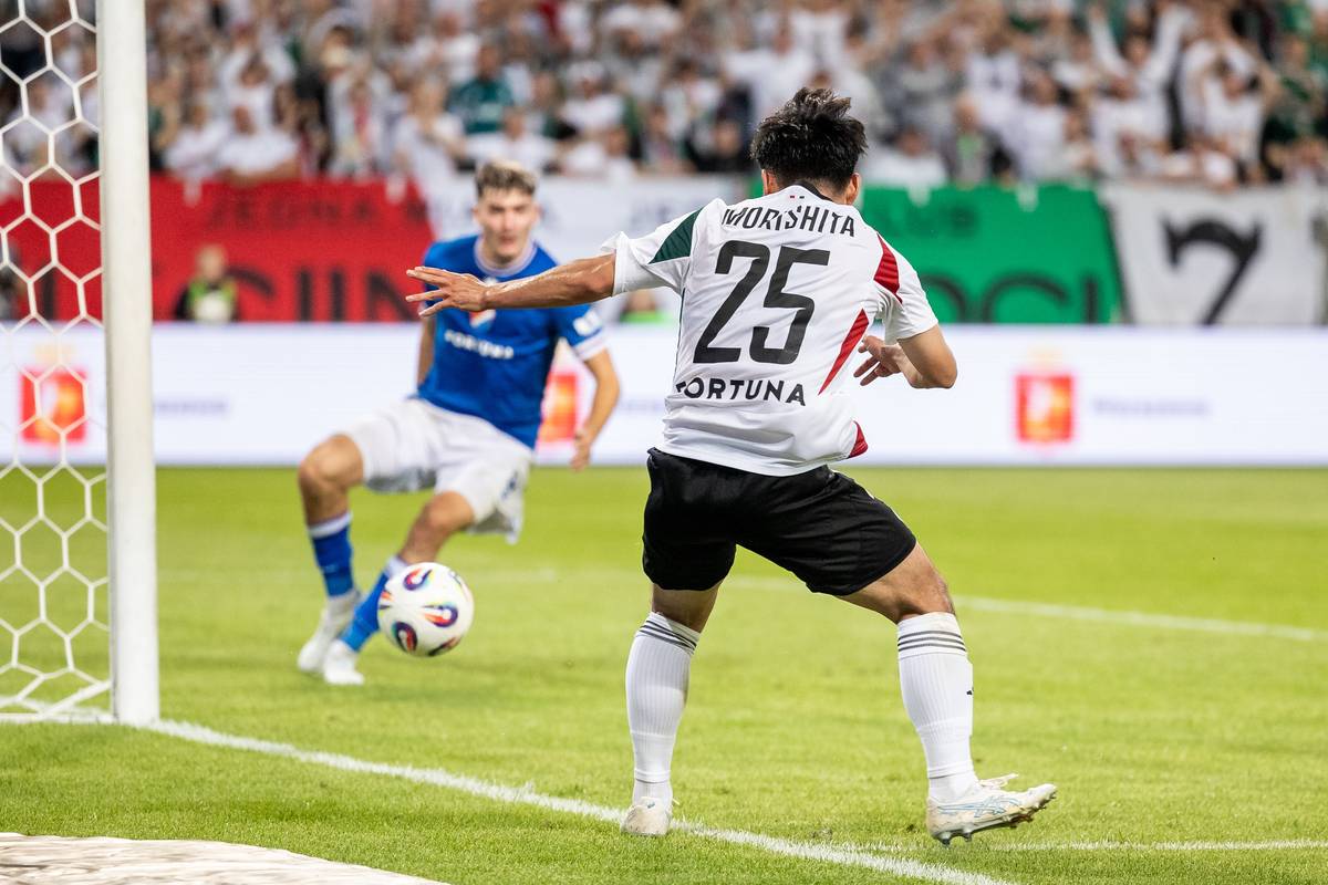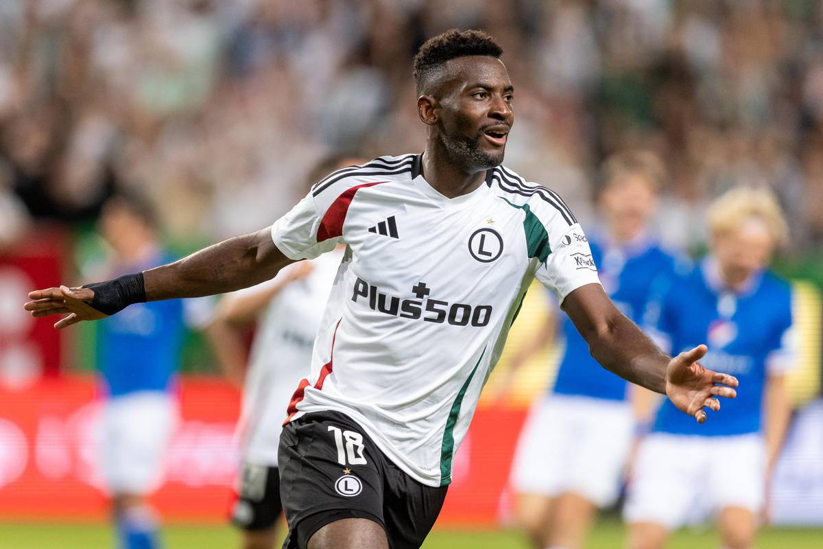 Zleva Jean-Pierre Nsame, Rjoja Morišita a Rafał Augustyniak slavící druhý gól legie.