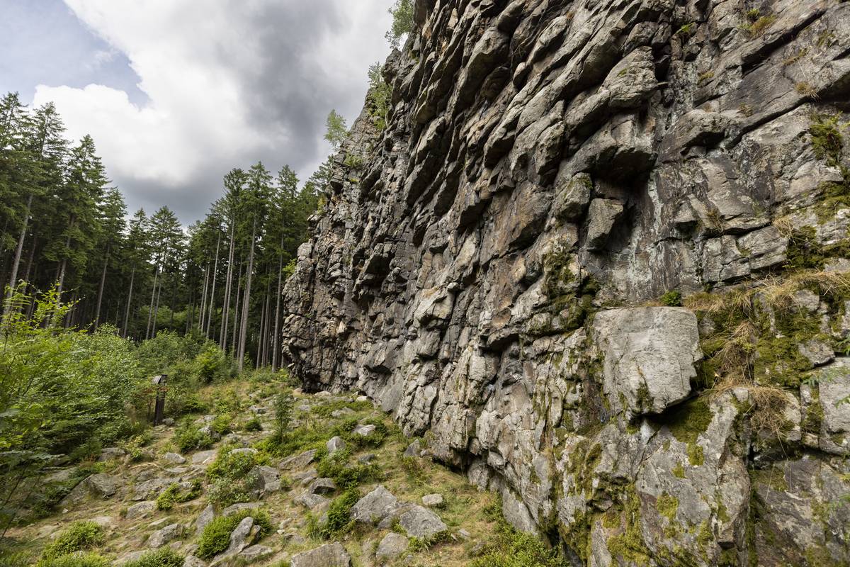 Po červené turistické značce dojdete do Dalečína, kde najdete šikmou stěnu bývalého hradu.