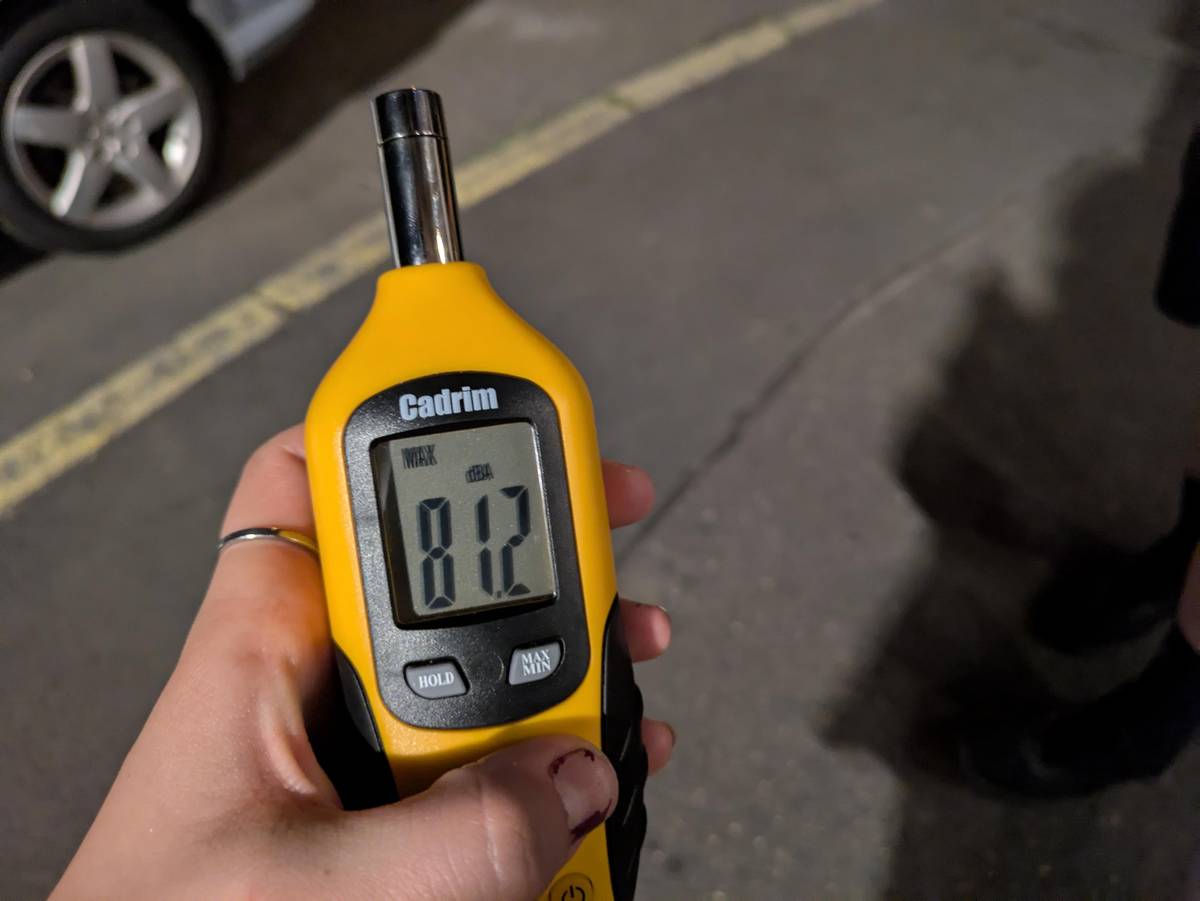 Hluk, který jsme naměřili poté, co karaoke ukončila policie a lidé se šli bavit před hostel.