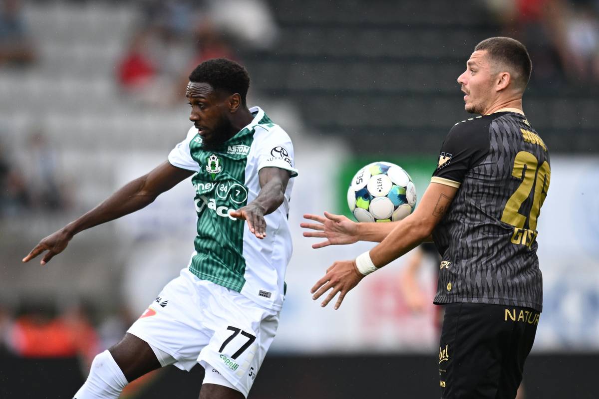 Albert Labík z Karviné v souboji s Jossem Didibou ze Zlína.