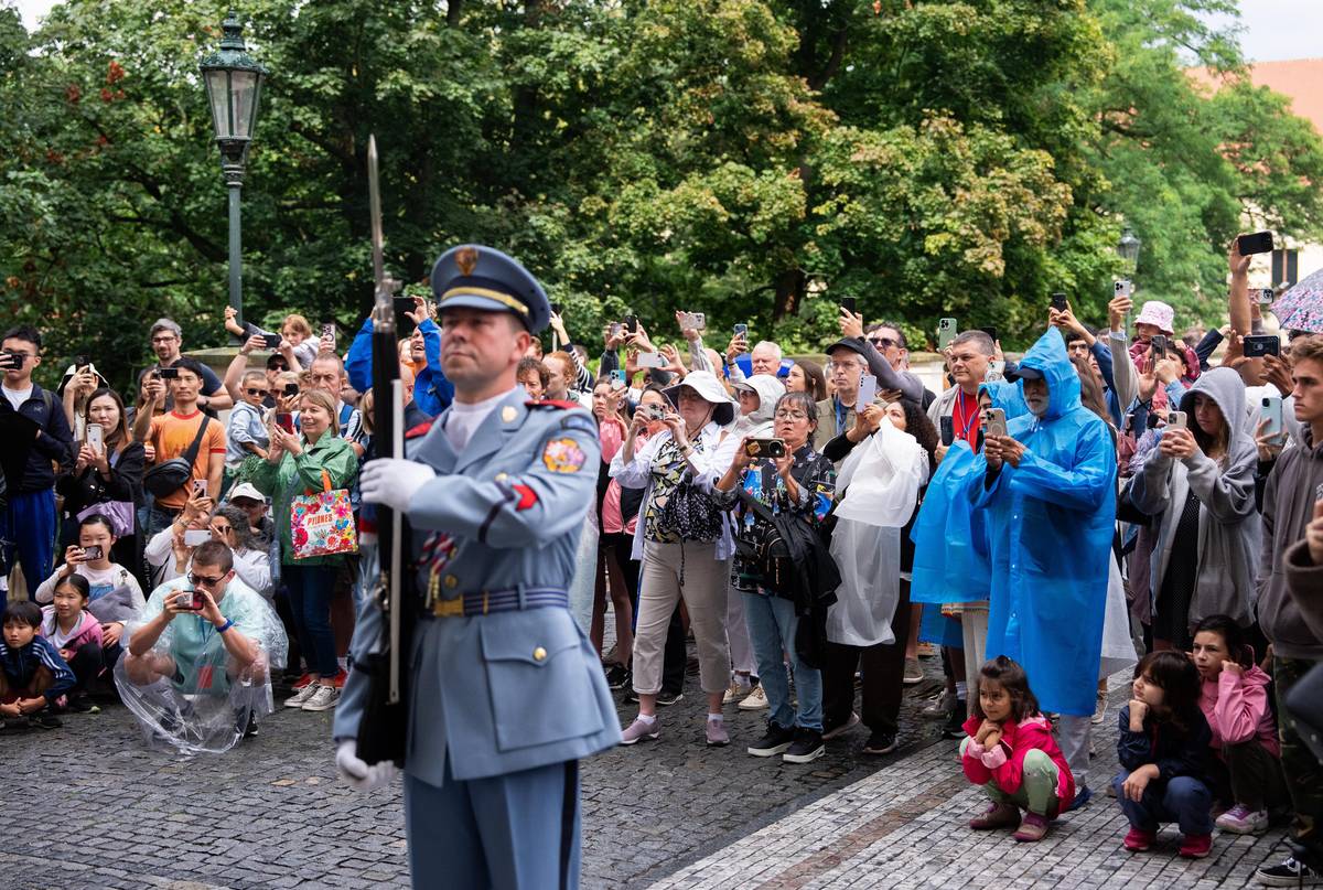 Čekání na výměnu stráží u Prašného mostu na Pražském hradě