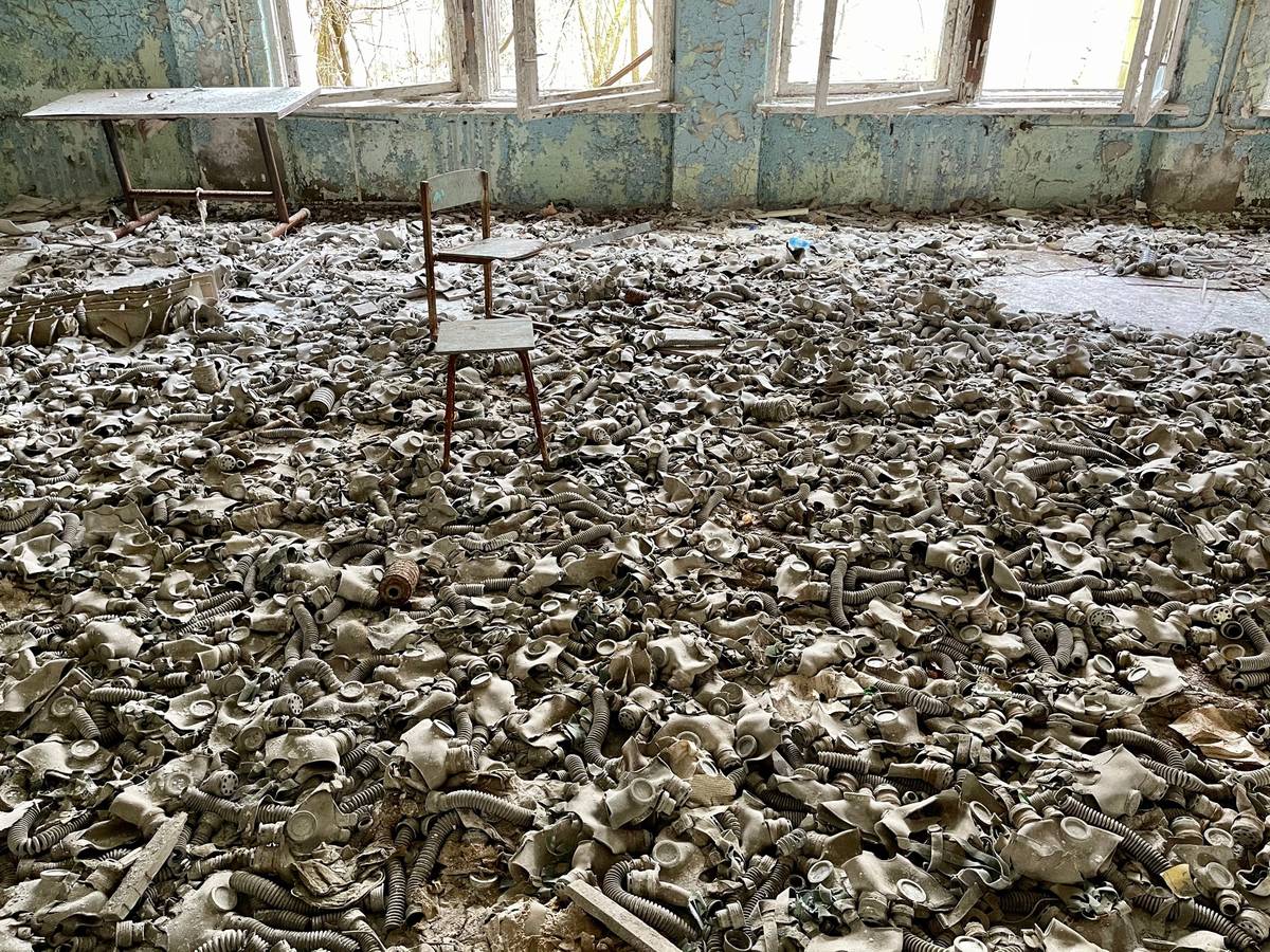 Na místě zůstaly tisíce plynových masek, které tu zanechali likvidátoři následků. Vyčištění zóny se měly účastnit statisíce lidí, často branců.
