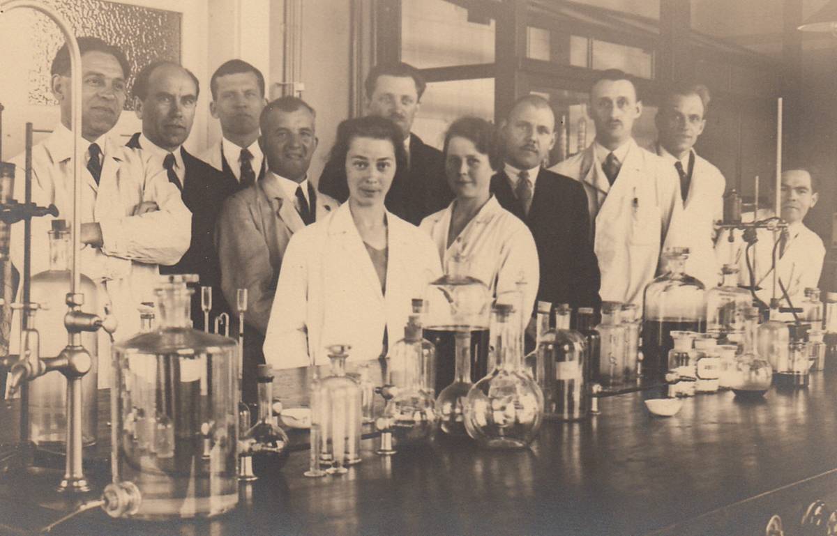 Vasilij Vukolov (vlevo) v laboratoři Státního ústavu zemědělství – oddělení lukařsko-pastvinářské. Snímek byl pořízen někdy během 2. světové války.