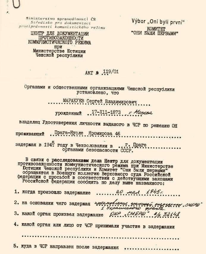 Marakujev se na seznam nepřátel Sovětského svazu dostal proto, že se v Praze stal ředitelem ruské školy zemědělského družstevnictví a spolupracoval s kozáckými organizacemi sdružujícími mladé Rusy, kteří bojovali na straně bělogvardějců proti bolševikům.