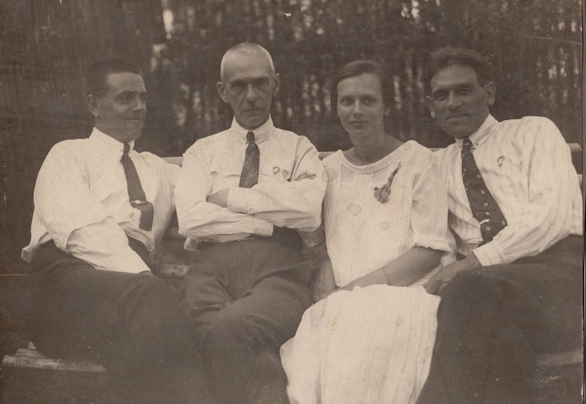 Sergej Marakujev (druhý zleva) a Vasilij Vukolov (nalevo), rodinná fotografie datovaná rokem 1925.