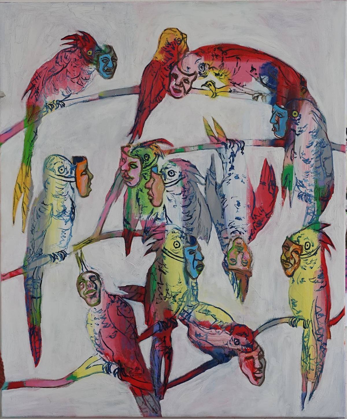 Lawrence Wells: Parrots with masks.