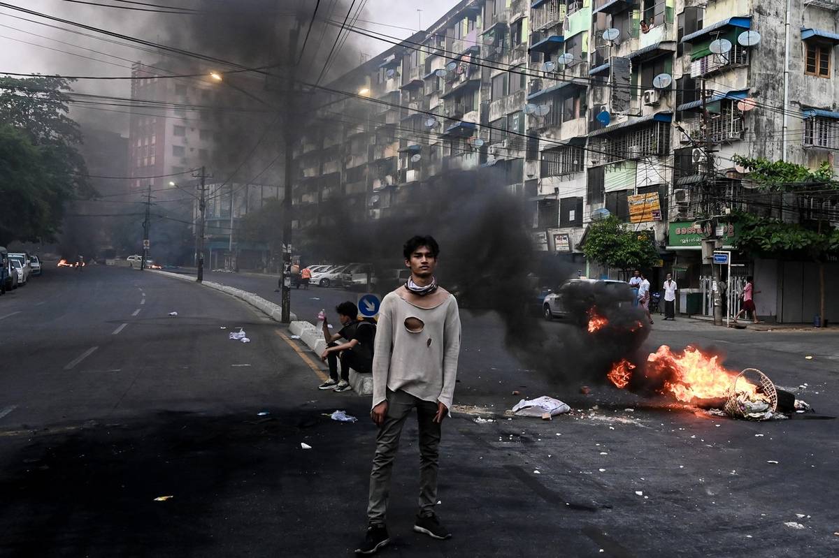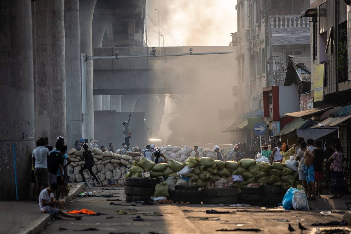 3. dubna: Hořící barikády ve čtvrti Tamwe. Předpokládá se, že vojenský převrat a následný politický chaos v Barmě by tam mohly zvýšit množství lidí žijících v chudobě až na 25 milionů, což je téměř polovina barmské populace. Uvedl to Rozvojový program OSN (UNDP).