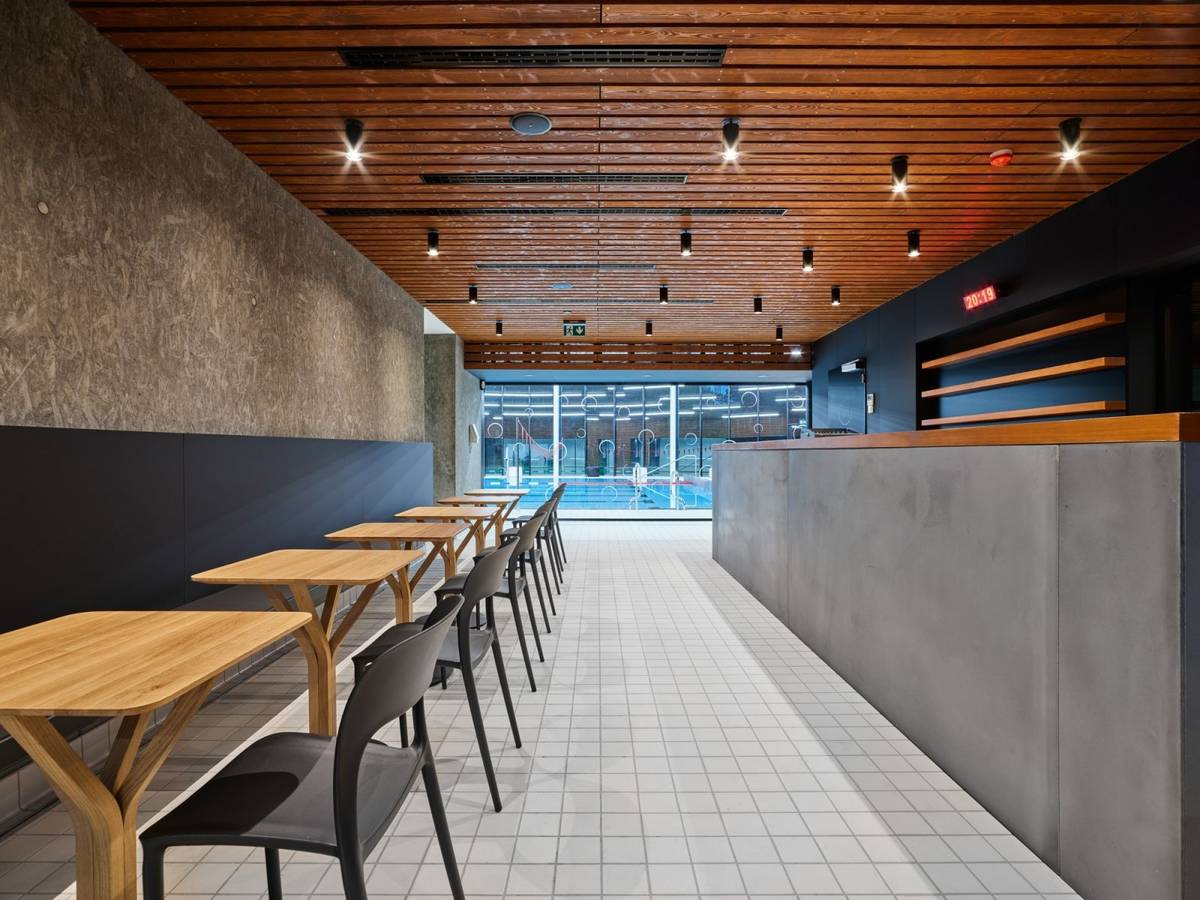 Návštěvníci wellness i bazénu se mohou společně potkat v baru s výhledem na plavce.