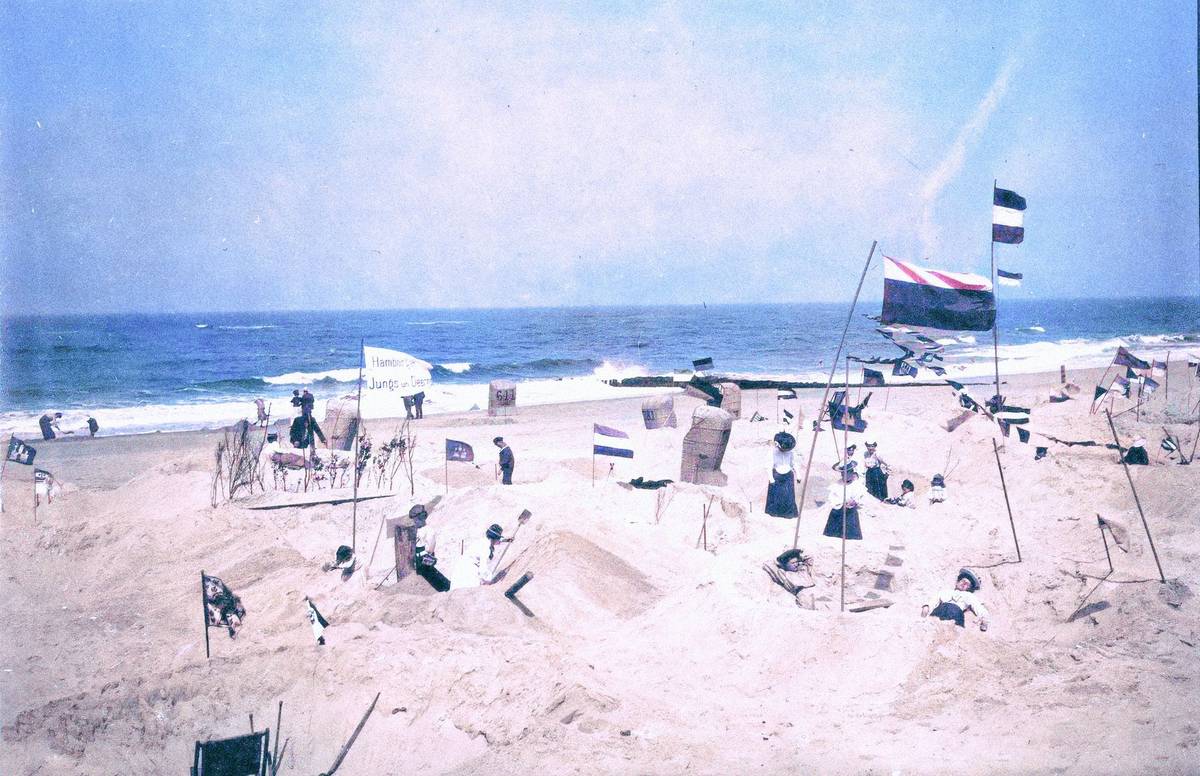 Pláž. Snímek byl pořízen v roce 1900, místo není uvedeno.