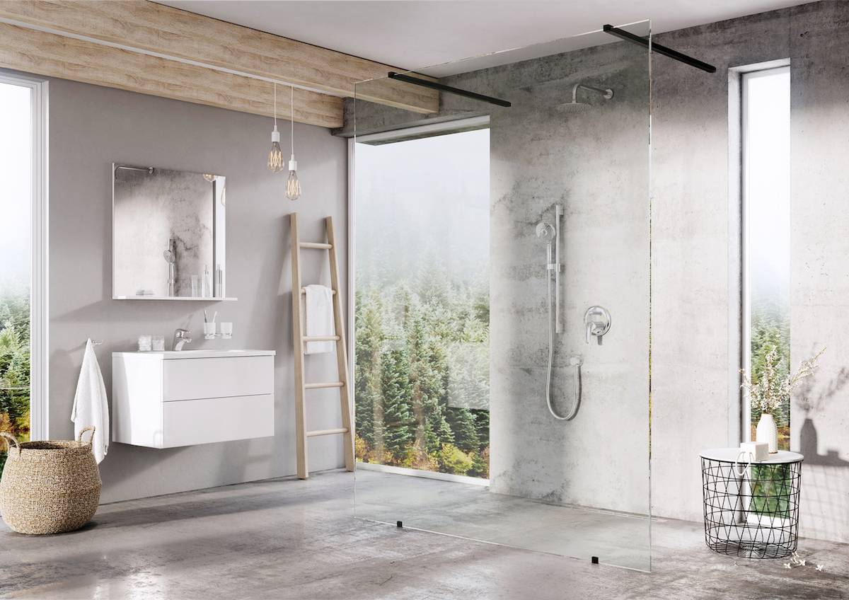 Koupelně dodají moderní vzhled skleněné stěny Pure. Speciální skla lze poskládat do několika podob, aby sprchový prostor využil možnosti koupelny.