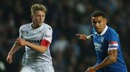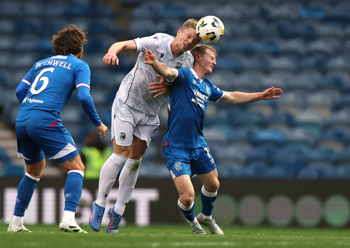 Lukáš Červ (uprostřed) během zápasu s Glasgow Rangers