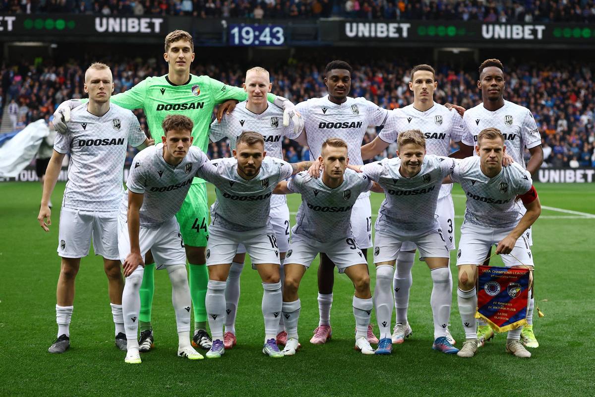 Fotbalisté Plzně při zápase s Glasgow Rangers