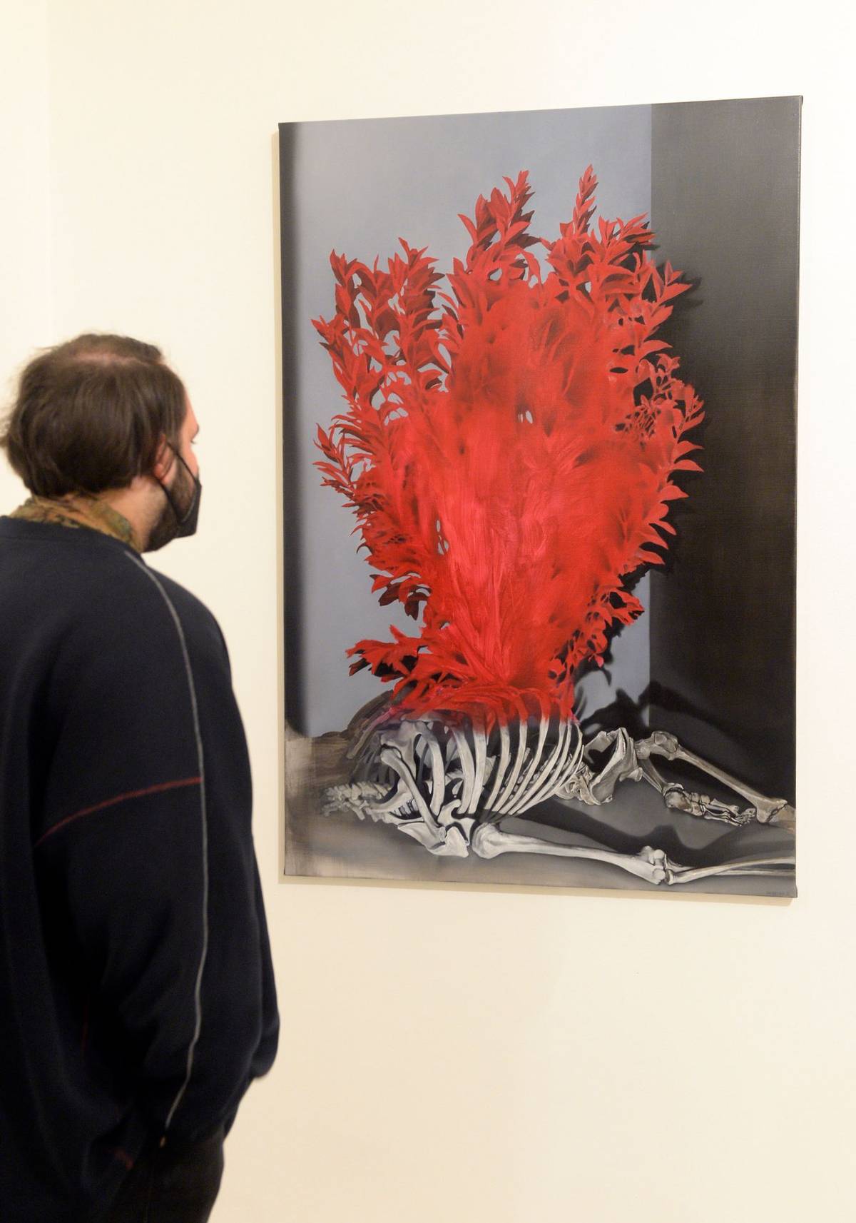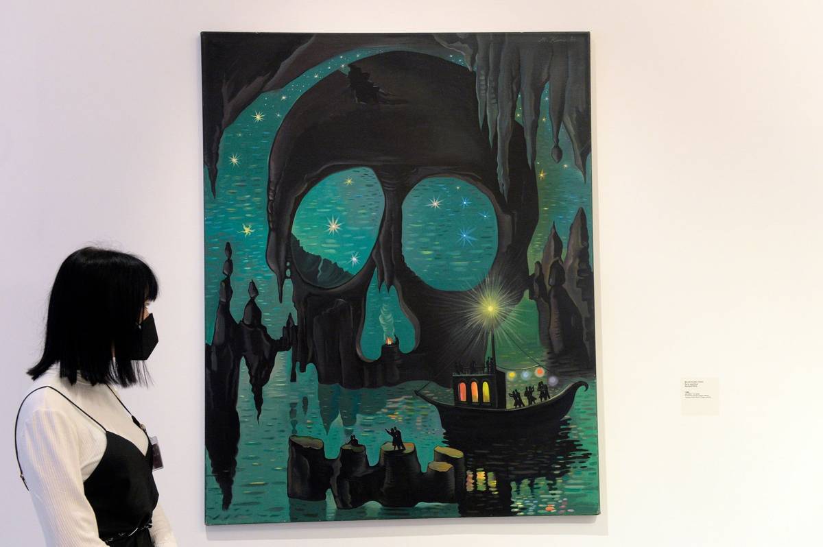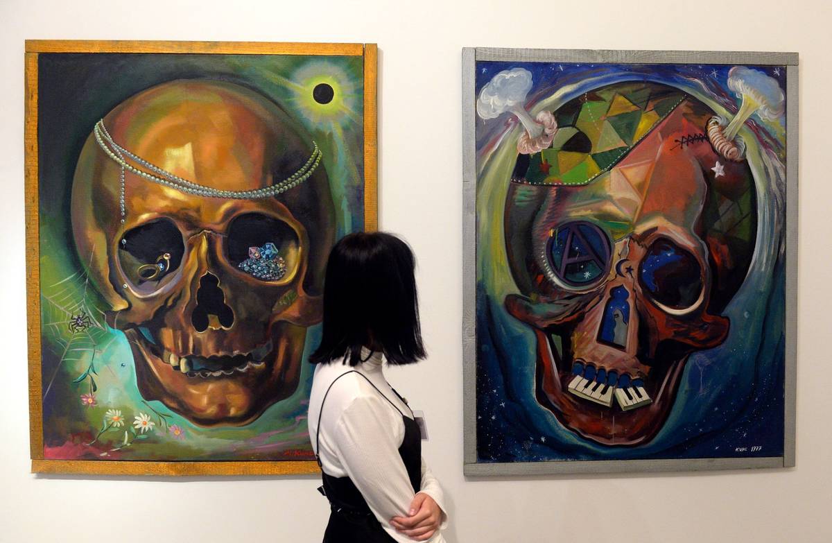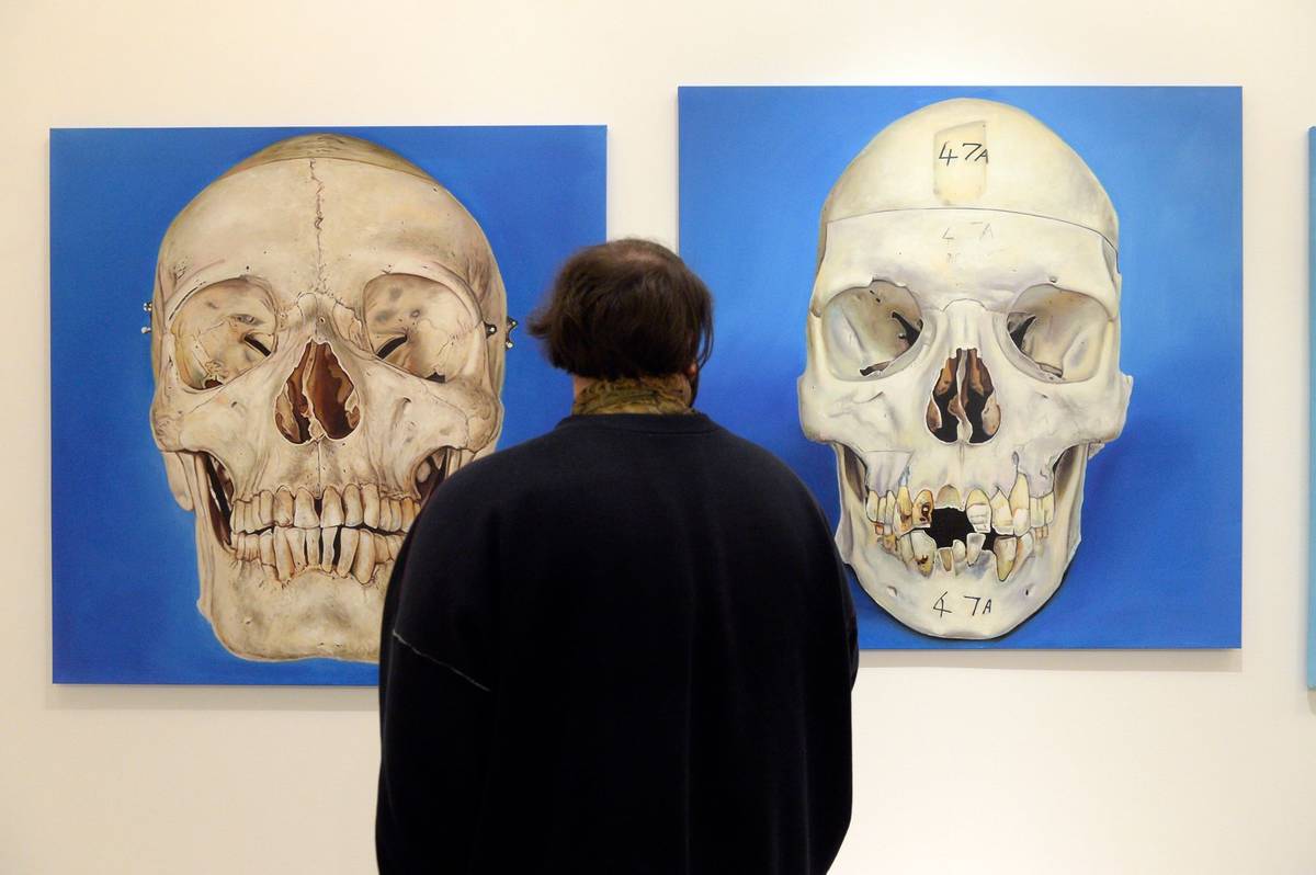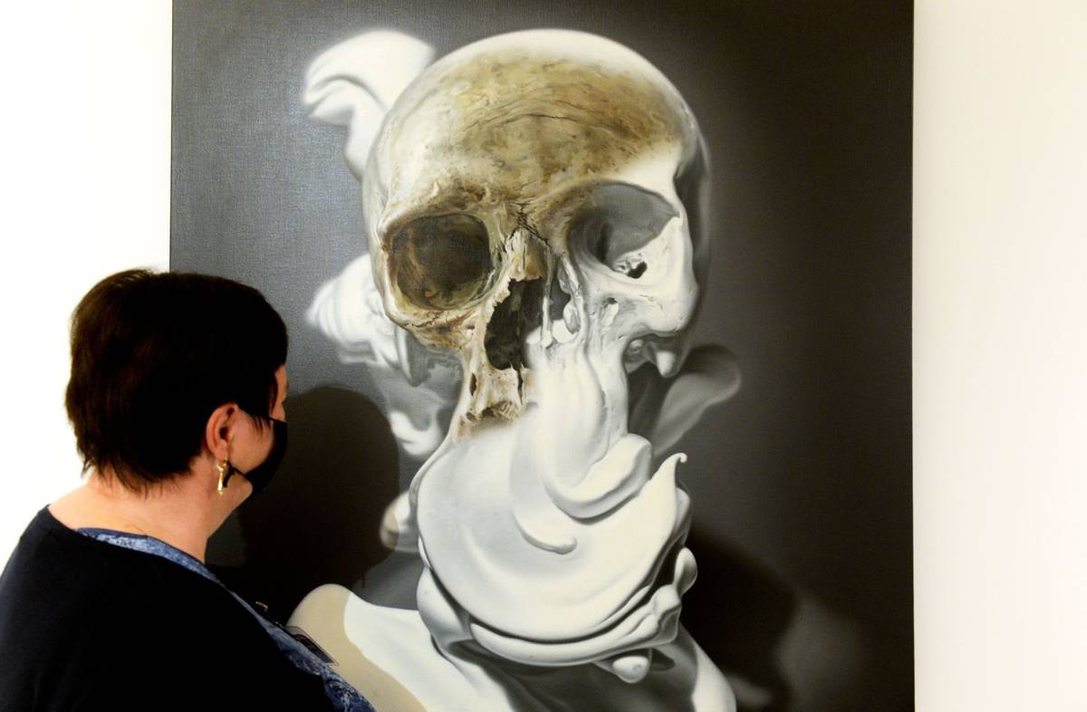 Na snímku z výstavy Vanitas v pražském Centru současného umění Dox je dílo Lebka od Davida Černého.