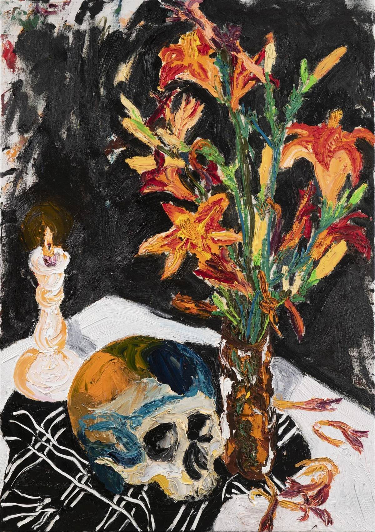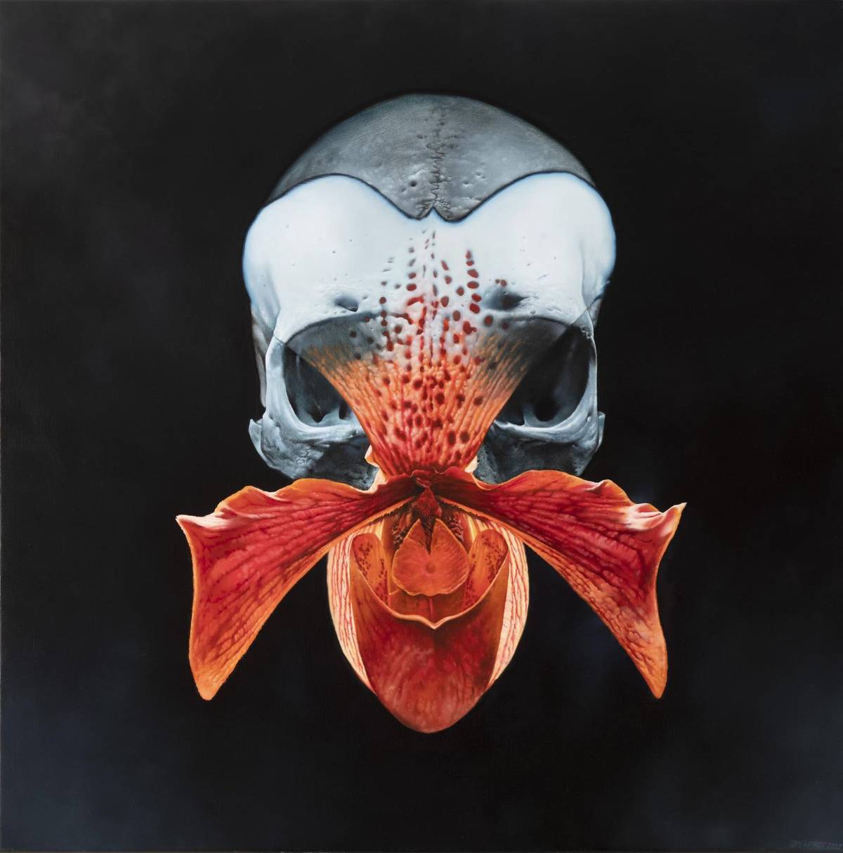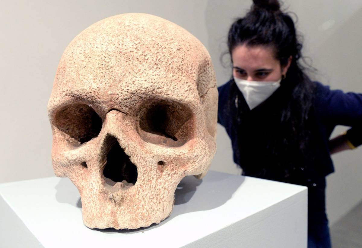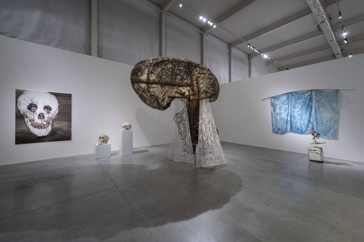 Na snímku z výstavy Vanitas v pražském Centru současného umění Dox je dílo Lebka od Davida Černého.